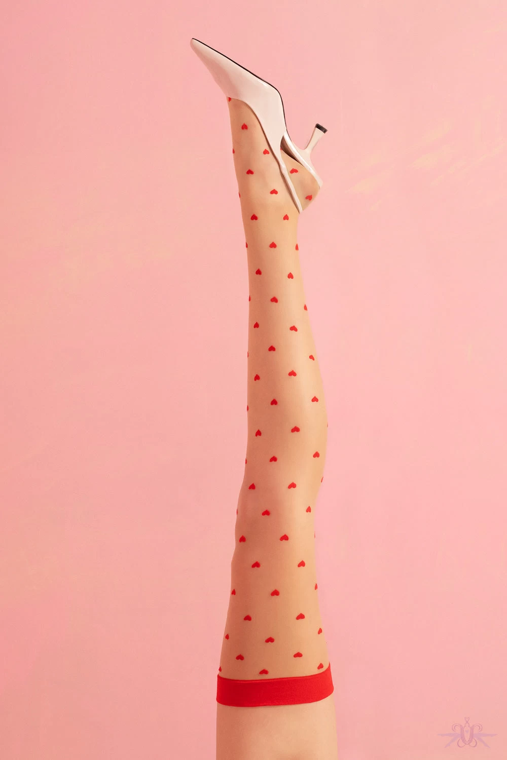 A seductive pair of stockings with tiny hearts that are seductive and charming. These sheer stockings are available in black, natural and pink or natural and red. Love is in the air with these sensual stockings.Â