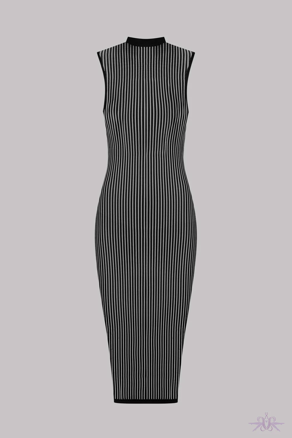 This gorgeous sleeveless dress a new edition to the Bande à Part collection at Maison Close. This piece is designed with graphic lines which slim and lengthen the body and is semi-sheer in appearance with soft tulle and microfibre fabric. The high neck on this sleeveless dress and the semi sheer fabric make this a captivating piece, with a figure flattering cut that encapsulates the feminine form to the greatest effect. Matching items also available.
