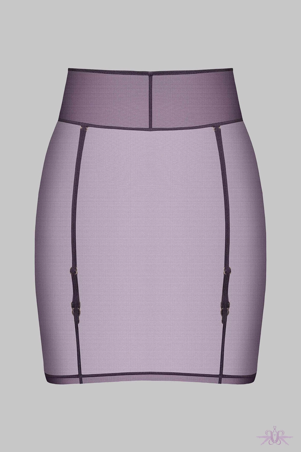 A stunning short garter skirt in sheer mesh from the new collection at Maison Close. This seductive skirt has a snug fit and good under clothing. The cross seams coordinate with the removable garters. A gorgeous slip skirt to wear over other pieces in the collection.