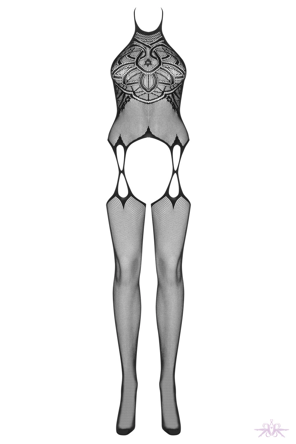 A fabulous fishnet bodystocking with a halter neck design. The back is exposed making this design so alluring and the straps between the top and the stocking create the suspender and stocking feel. This is ideal for those who don’t fancy the complete bodystocking.Â