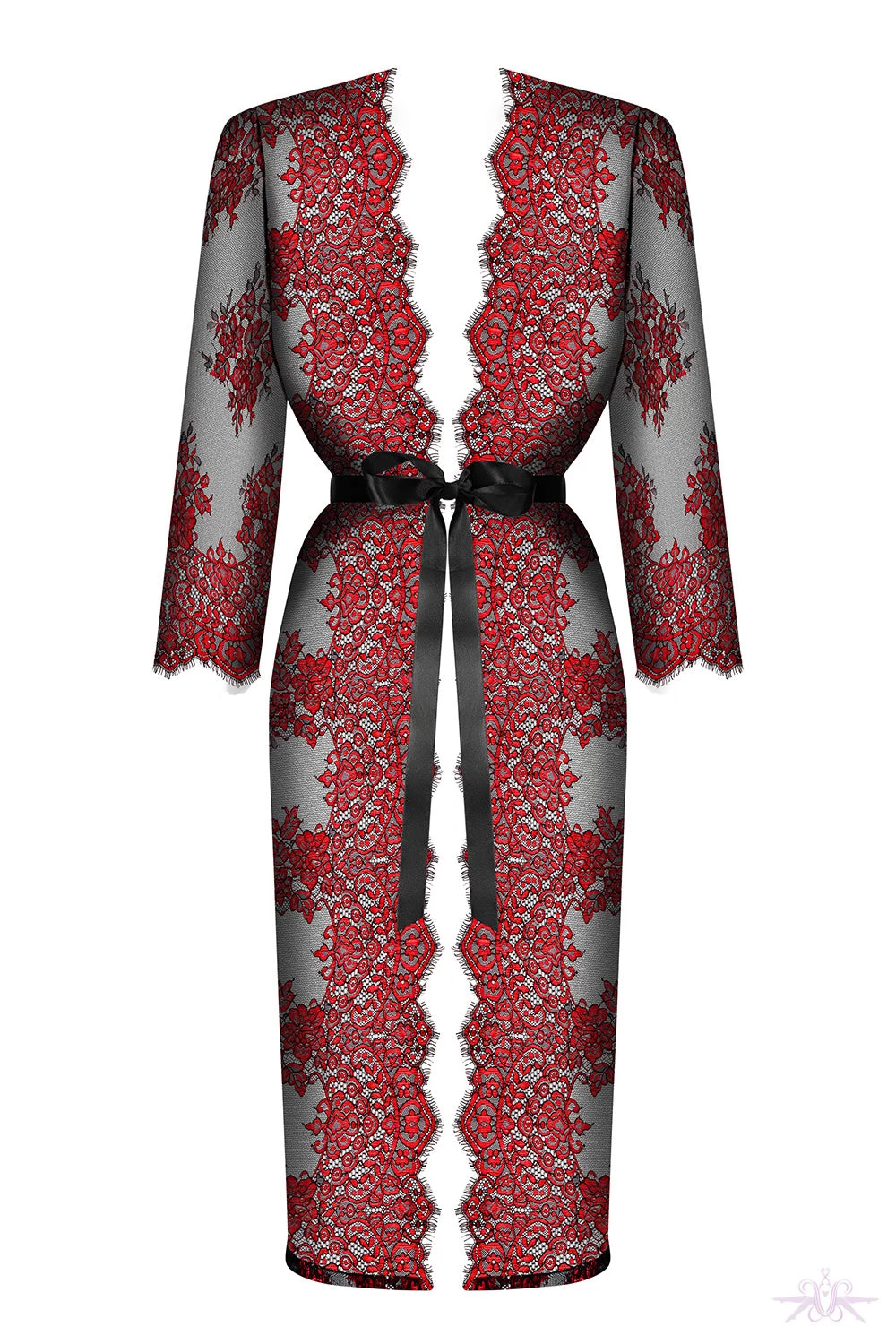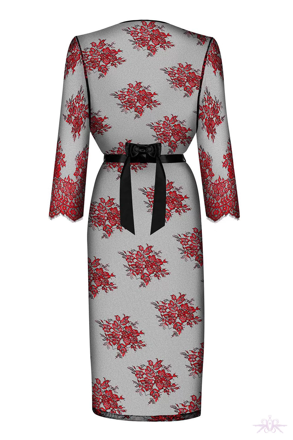 A classically seductive peignoir from Obsessive in see through mesh and lace. The sensual lace and luxurious satin belt and eyelash lace edging create a stunning look. Complete your boudoir look.