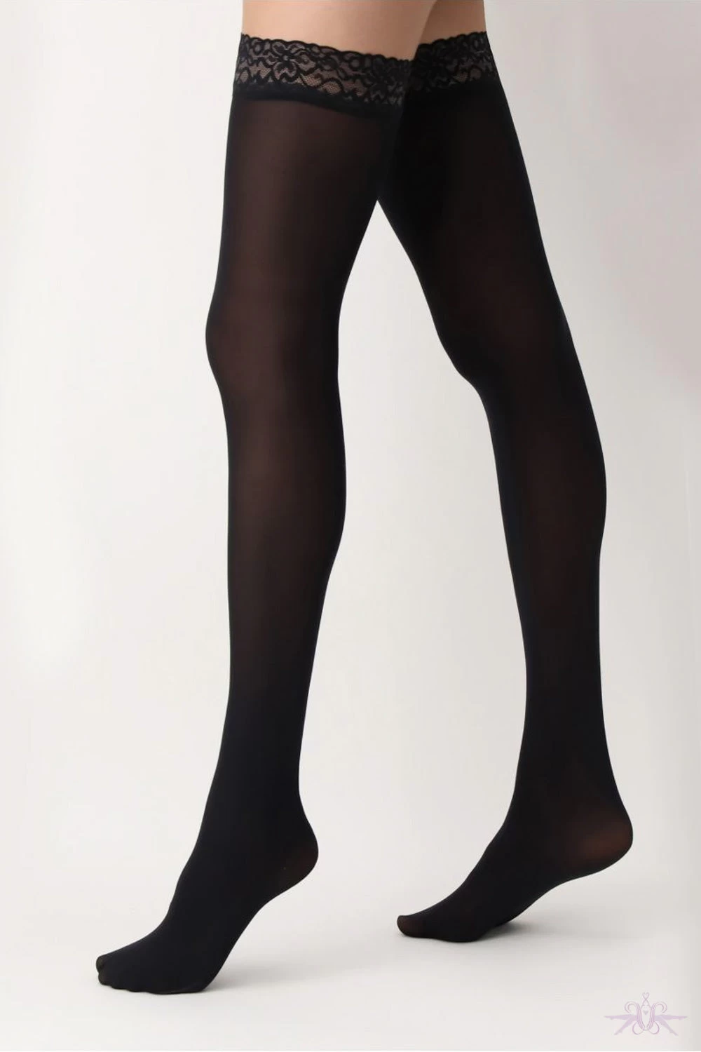 A beautiful stay up from Italian designers at Oroblu. This 50 denier version of the Chic Up 15, is an opaque version of this classic style. It is simple yet very elegant with a lace top and perfect for the cooler days.Â